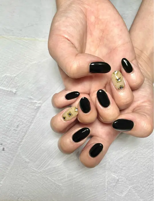 ネイル ブラック シースルー デザインのギャラリー
